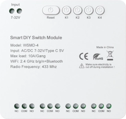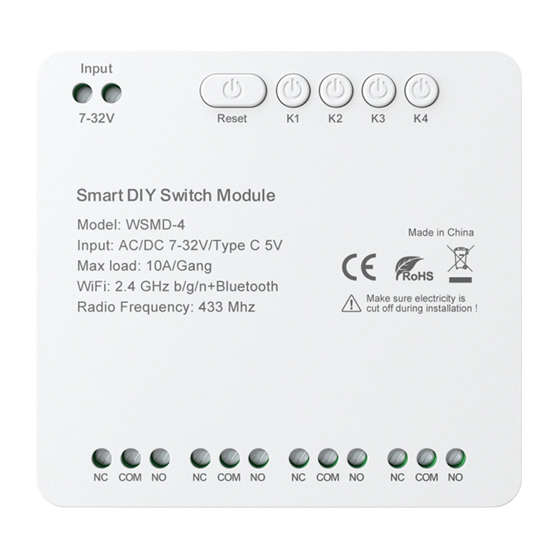 The universal four-channel AVATTO DIY module lets you conveniently control lights, gates, pumps, or blinds remotely. It offers 2.4 GHz Wi‑Fi, Bluetooth fallback, support for 433 MHz RF, power via 7–32 V AC/DC or 5 V USB‑C, and up to 10 A per channel. It’s easy to set up in AVATTO / Tuya Smart / Smart Life apps and works with Amazon Alexa and Google Assistant.