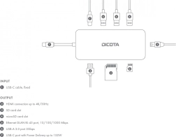 USB‑C 8‑in‑1 multi hub 4K with PD 100 W power by DICOTA