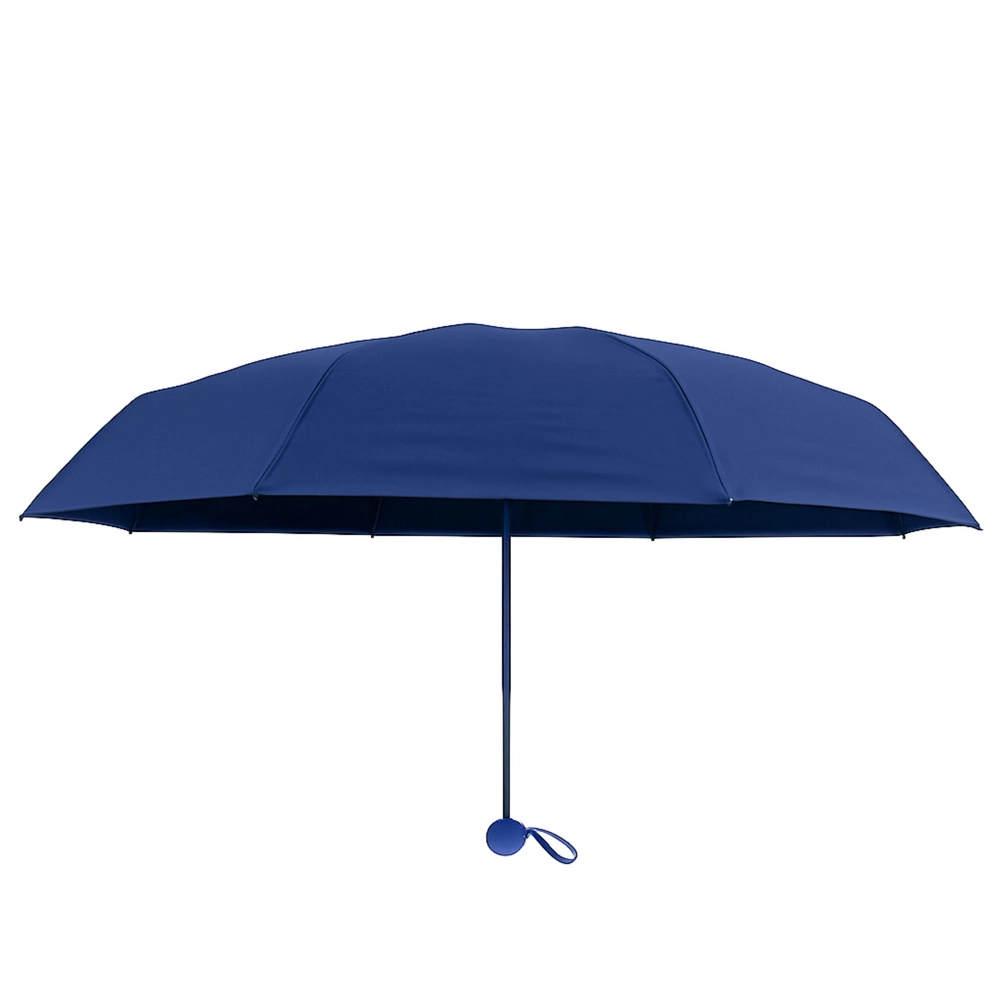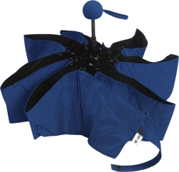 Compact dark blue umbrella with a diameter of 90 cm offers reliable protection from rain and sun. Thanks to the UV UPF 50+ coating, it effectively blocks harmful rays, is lightweight, foldable, and easily fits into a handbag or backpack. The comfortable round handle and practical case make everyday carrying easy.