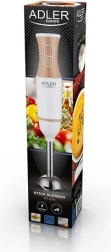 The ADLER AD 4616 hand blender is a compact helper for everyday cooking. Thanks to the powerful 500 W motor, you can quickly prepare silky creams, purees, baby food, and fluffy sauces. The stainless steel blending shaft with protective bell guards the container and reduces splashing.