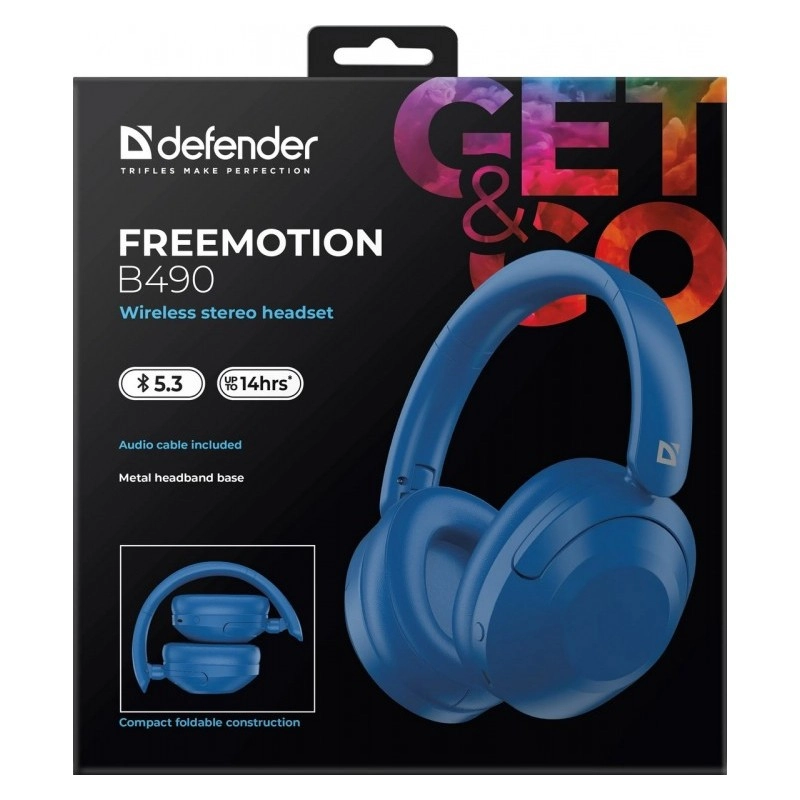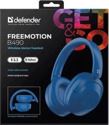 Enjoy the freedom of no cables with the FREEMOTION B490 headset in elegant blue. They offer reliable Bluetooth connectivity, comfortable wear, and great sound for music and calls. The package also includes an audio cable for listening even without battery power.