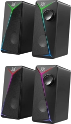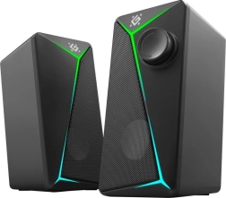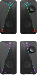 Enjoy balanced stereo sound in an elegant, compact body. These 2.0 desktop speakers are great for everyday music listening, gaming, and watching movies. The 6 W output provides ample volume for smaller rooms, while the modern design with RGB LED backlighting elevates your desk’s look.