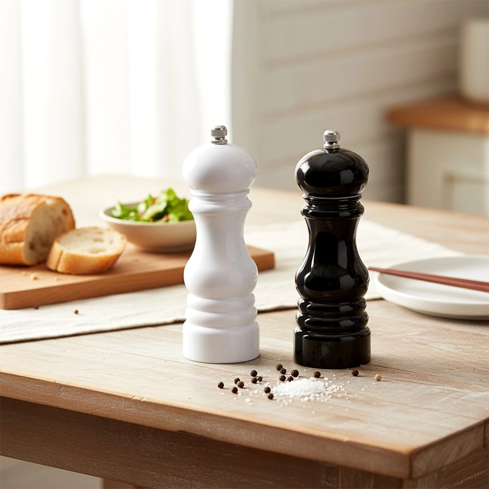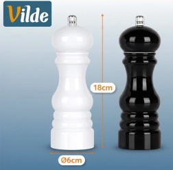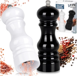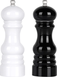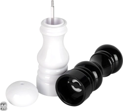 With this elegant set of manual mills, you get everything you need to season dishes freshly right at the table. The ceramic mechanism provides long service life and uniform grinding of pepper, salt, and other spices. The black-and-white color design makes it easy to identify the contents at a glance.