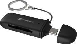 The compact and functional NATEC Scarab C card reader enables simultaneous transfer from SD and microSD at speeds up to 5 Gb/s (USB 3.2 Gen 1). Connect it via USB‑C to a computer, laptop, tablet, or phone with OTG. A protective cap and the included keyring/key fob make it safe and easy to carry.