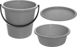 Practical set for cleaning and household: 13 L bucket with a 5 L bowl and a universal lid that fits both parts. Durable and lightweight design made of easy-to-clean plastic, a strong handle for safe carrying, and space-saving storage thanks to a stackable solution. Ideal for cleaning, mopping floors, carrying water, and everyday tasks at home, in the garden, or in the workshop.