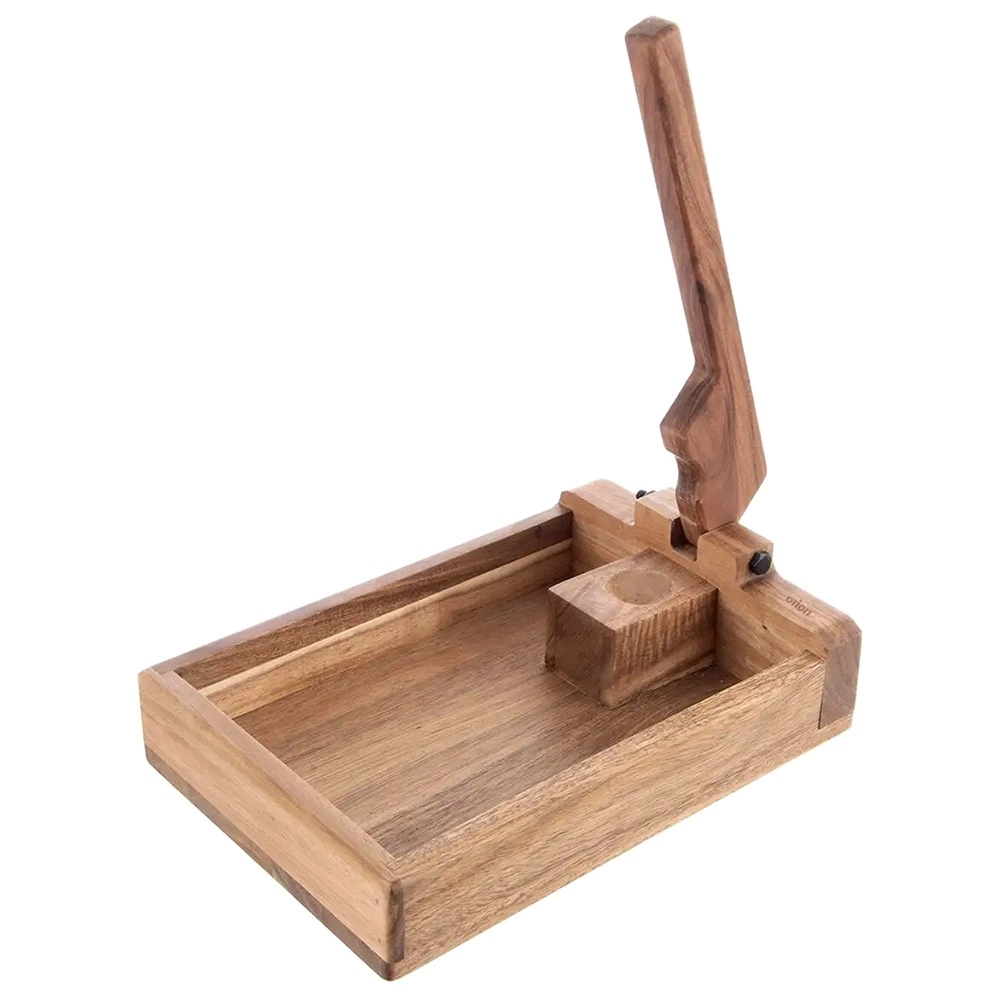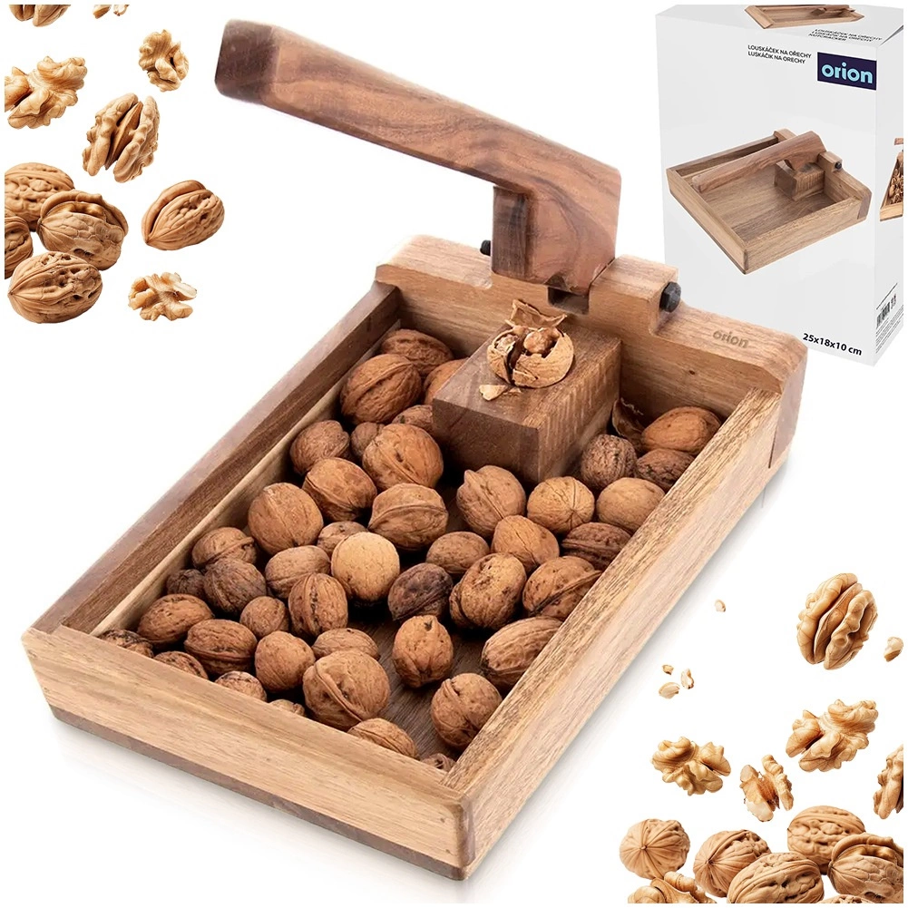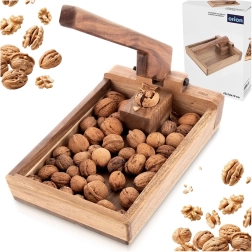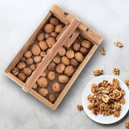 This wooden nutcracker with a practical tray keeps shells and kernels together, making cracking clean and organized. The lever mechanism provides enough force even with light pressure, ensuring quick and safe cracking.