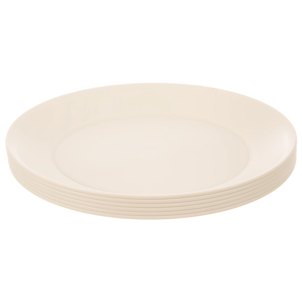 Discover the practical set of 6 SANDY dessert plates in an elegant cream color. Thanks to their lightweight yet sturdy construction, they are ideal for everyday serving of desserts, pastries, fruit, and small meals at home, in the garden, or on the go.
