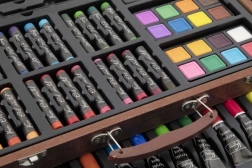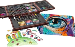 A complete art set in an elegant wooden case for beginner and advanced artists alike. It includes a wide selection of drawing and painting tools to bring your ideas to life. Inside you’ll find acrylic paints, watercolors, soft and oil pastels, colored and graphite pencils, brushes, and other essentials—everything neatly organized and easy to carry.