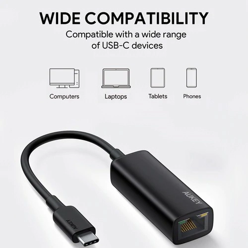 The AUKEY USB‑C to RJ45 adapter gives your laptop, ultrabook, or tablet a reliable gigabit Ethernet connection for fast, stable networking. Thanks to the USB‑C connector and IEEE standards, it’s fully compatible with modern devices and older networks alike.
