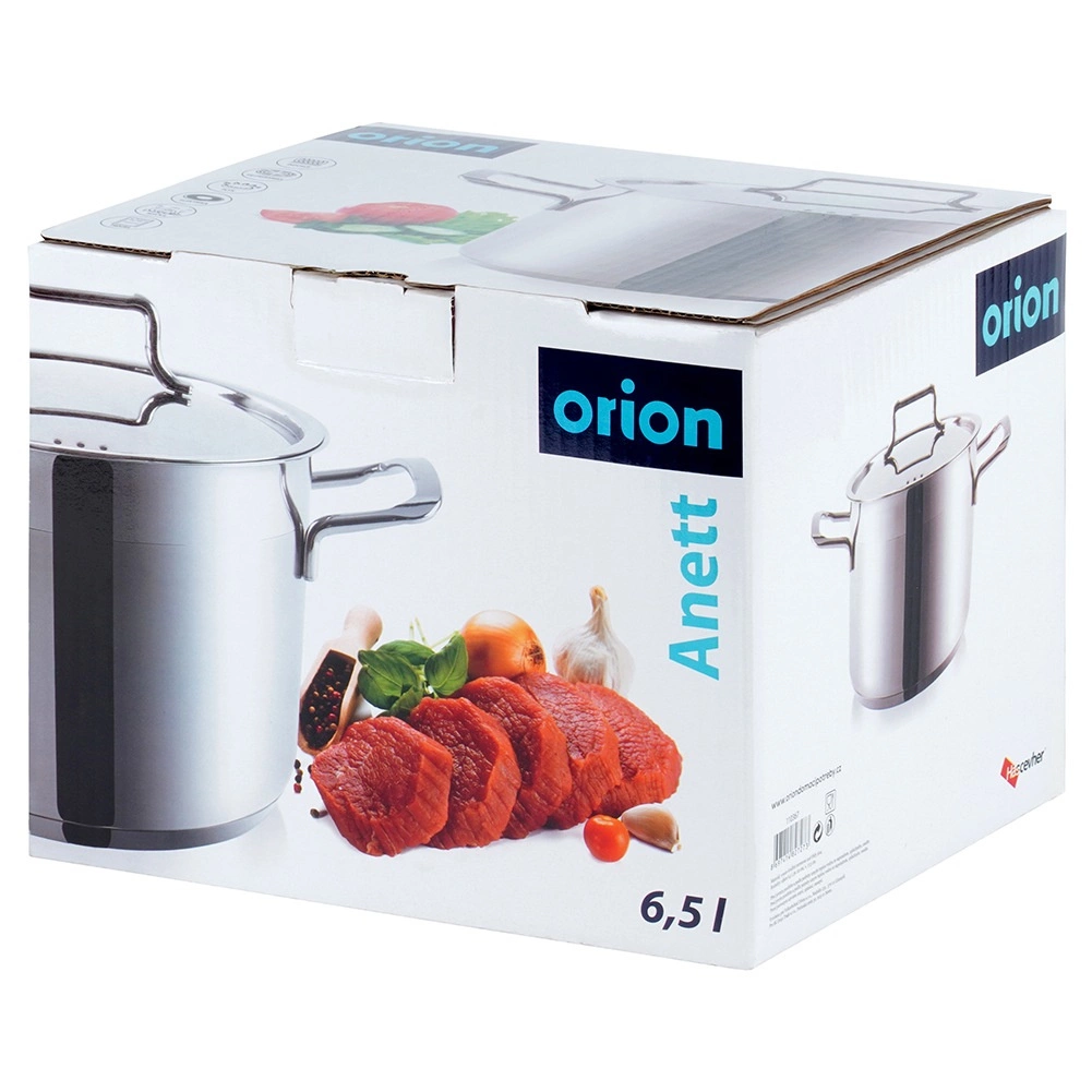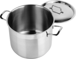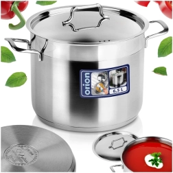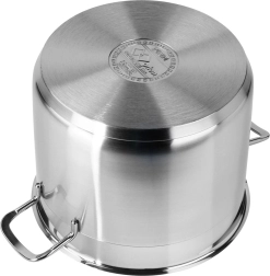 A premium stainless steel pot with lid and a 6.5 l capacity, ideal for everyday cooking and braising. Thanks to the multi-layer acute-thermal base, it stores and distributes heat evenly, is suitable for all types of stovetops including induction, and enables energy-efficient cooking with minimal fat. High-quality 18/10 stainless steel, thick walls, comfortable handles, and easy cleaning including dishwasher safe make this pot a reliable helper in any kitchen.