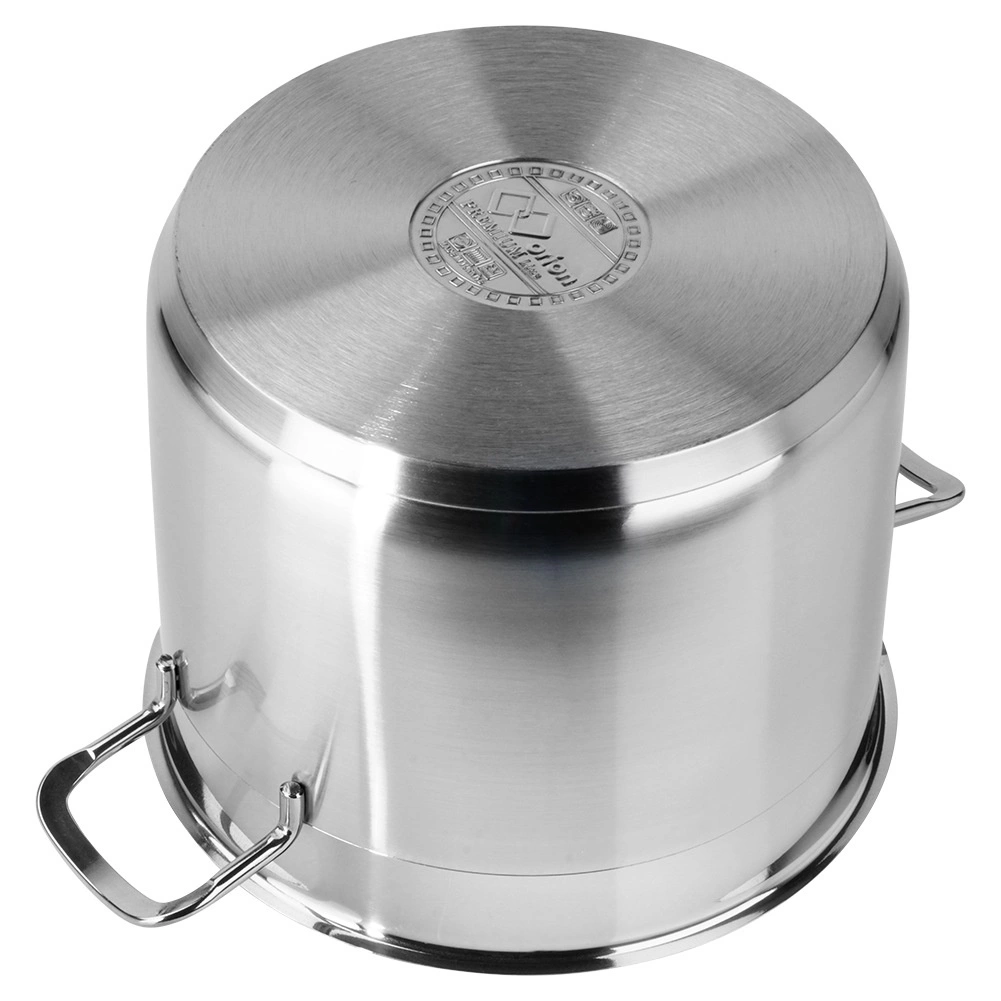 This robust pot made of quality 18/10 stainless steel in a matte finish with an elegant glossy band at the top is designed for demanding home and professional cooking. The multi-layer acute-thermal base ensures efficient heat transfer, so meals cook faster, more evenly, and with lower energy consumption.