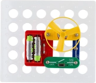 - perforated base, battery holder, switch, jumpers, motor/fan, light and sound module, additional components
