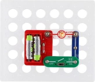 This educational electronics kit lets children assemble simple to more advanced circuits step by step following a clear guide. Thanks to the practical perforated base and color-differentiated parts, building is intuitive and safe.