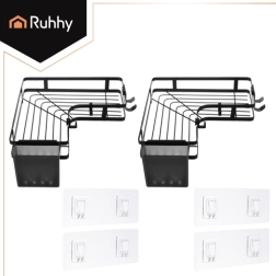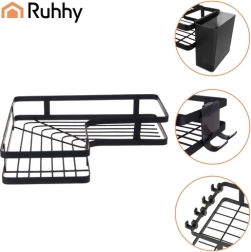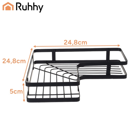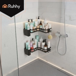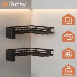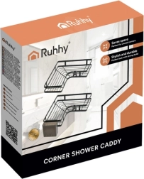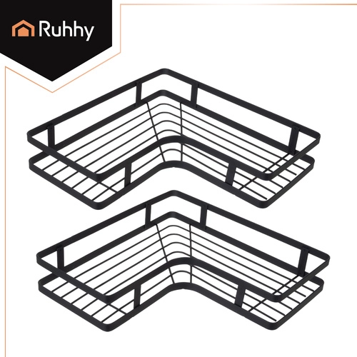 Maximize bathroom space with RUHHY two-tier corner shelves. Strong self-adhesive mounts ensure reliable installation without drilling into tiles, while powder-coated steel withstands moisture and everyday use. The sleek black color and minimalist lines fit perfectly into modern interiors.