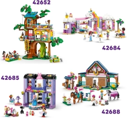 Discover a colorful world of friendship and imagination with the LEGO Friends clubhouse in Heartlake City. The three-story model in a mix of blue, pink, and yellow elements is designed for easy access and interior visibility thanks to large windows. Kids will enjoy action scenes with the zip line, slide, and climbing wall, as well as calm moments in the studio or kitchen.