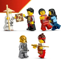 Relive the nostalgia with the anniversary edition LEGO NINJAGO Four Weapons Forge, inspired by the pilot of the beloved series. The intricate model with a traditional dark roof, red and gold decorations, and a stone base comes to life thanks to its opening construction that reveals a bedroom, a forge, and other nooks filled with themed accessories.