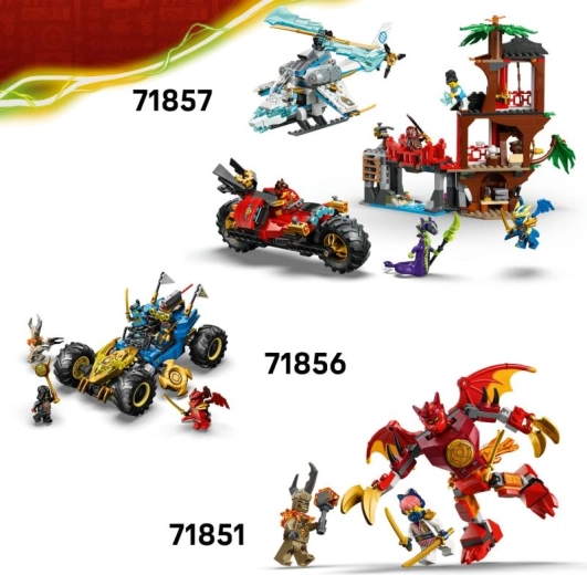 Discover the impressive LEGO NINJAGO Life Dragon 71859 building set for kids aged 9+. The model features 1050 pieces and offers a highly detailed dragon in natural colors with many movable parts for realistic poses. Included are a saddle for a minifigure, a rotating tree with a hidden golden sword, a poseable mech suit, and 8 iconic minifigures of heroes and villains from the world of NINJAGO. An interactive guide in the LEGO Builder app makes building easier and boosts creative play.