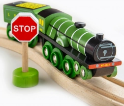This wooden locomotive Flying Scotsman by Bigjigs Rail brings a piece of history into your home. The set includes 1 locomotive piece, 1 wagon piece, and 3 track pieces. The locomotive is made from quality and responsibly sourced natural materials, ensuring its reliability and adherence to strict European standards.