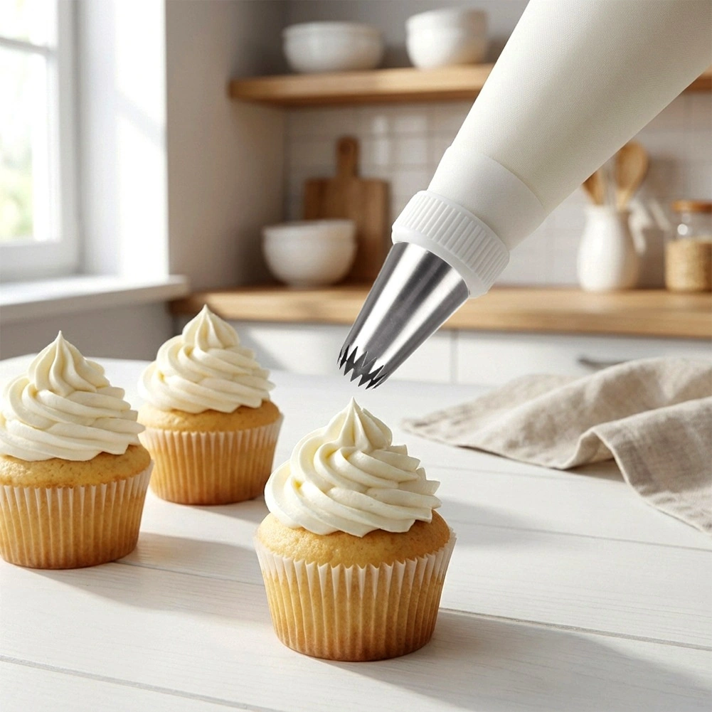 The durable stainless steel design is hygienic, easy to clean, and dishwasher-safe. A great choice for home bakers and professional pastry chefs who want consistent, attractive decorating results.