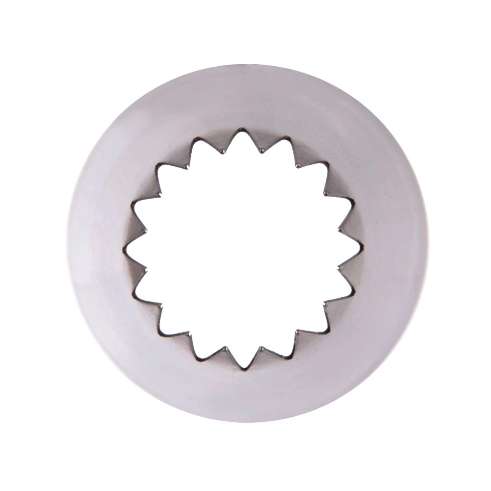 This high-quality stainless steel open star tip creates decorations with pronounced ridges—ideal for creams, buttercream frostings, and whipped cream. Thanks to its universal base, it fits most disposable and reusable piping bags and ensures a precise, smooth flow of cream.