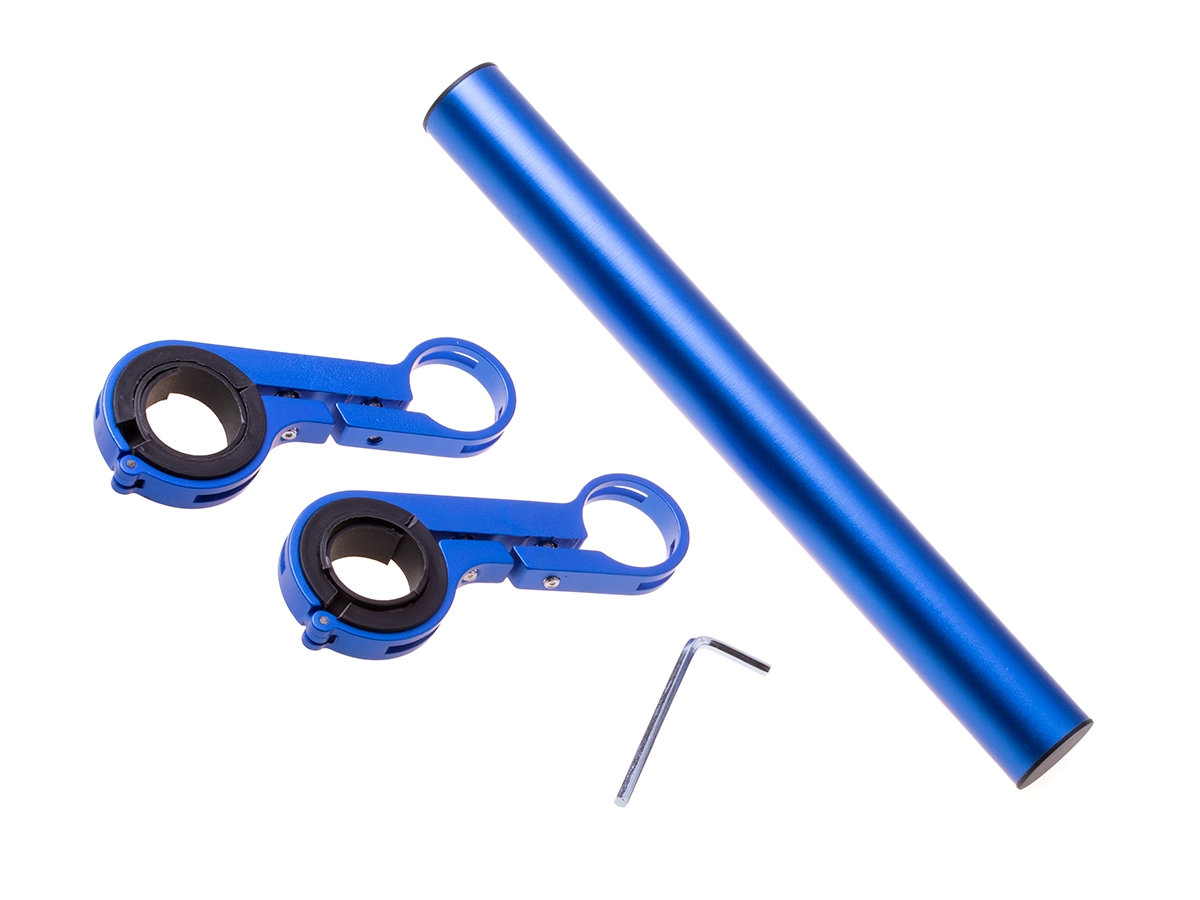 This handlebar extension mount adds extra straight mounting space to your XIAOMI M365/PRO scooter without modifying the original handlebars. The robust aluminum alloy and dual clamp provide excellent stability even on uneven terrain, while the clean blue anodized finish adds style to your scooter.