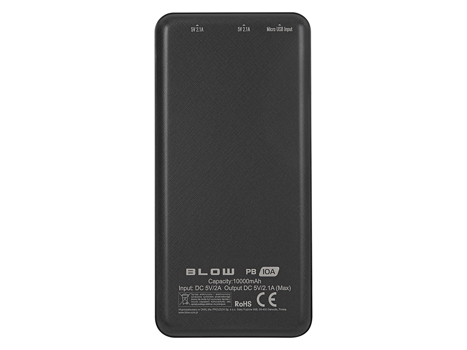 The 10000 mAh PB10A power bank is designed for stable, fast charging of your mobile devices. With dual USB outputs, you can charge your phone and accessories simultaneously, while intelligent voltage control protects the battery and ensures efficient power delivery. The textured body and compact dimensions make everyday carrying in a pocket, bag, or backpack easy.