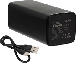 20000 mAh capacity in a durable PC+ABS build. The safety system protects against overheating, short circuit, overvoltage, and overcurrent. Suitable for travel and airplane carry-on.