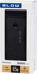 This high-performance 20000 mAh power bank supports PD 65 W, QC 3.0, and SCP standards, topping up your devices by up to 70% in 30 minutes. Thanks to quality Li-Pol cells, it delivers fast, stable, and safe charging without excessive heat.