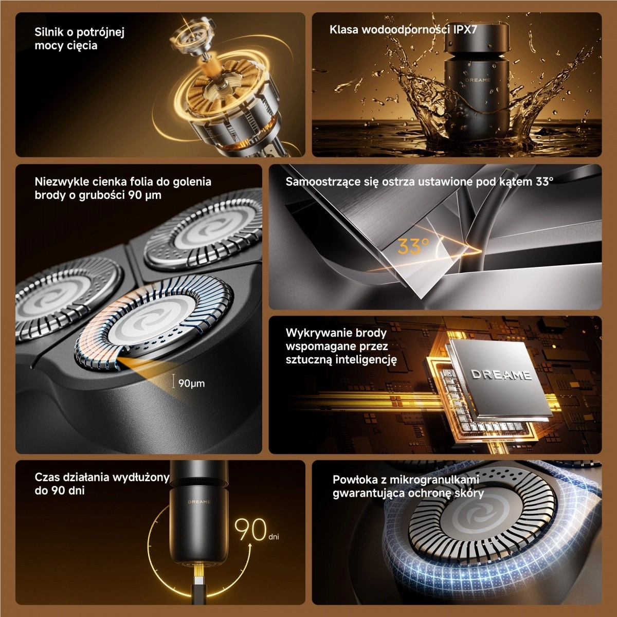 The Dreame S7 is engineered for everyday reliability and skin comfort. The floating shaving head adapts to the contours of the face and neck, helping you reach tricky spots with ease. An ultra-thin 90 μm foil and blades ground at a 33° angle capture both short and longer hairs for a smooth result in a single pass.