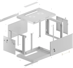 Thanks to the Flat Pack packaging, the cabinet is easy to transport even in smaller cars, and you can assemble it quickly with the help of clear instructions. Integrated 19" rails with U markings make device installation and cable management straightforward.