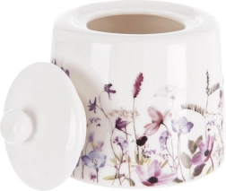 White glazed porcelain with a meadow flower design gives the sugar bowl an elegant look while ensuring easy cleaning and high durability.