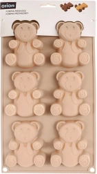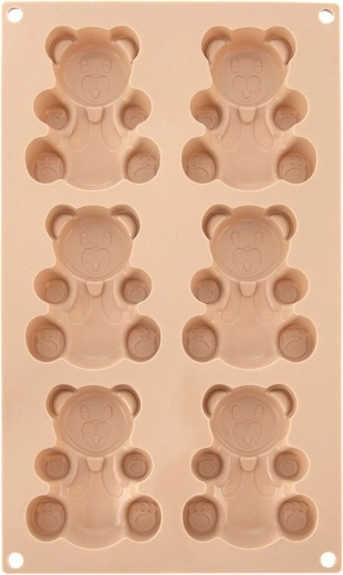 A practical beige silicone mold makes up to 6 adorable bears measuring 8.5 × 7 cm. It is flexible, non-stick, and heat-resistant from -40 °C to +200 °C. Suitable for oven, microwave, and freezer, and it’s dishwasher safe.
