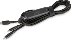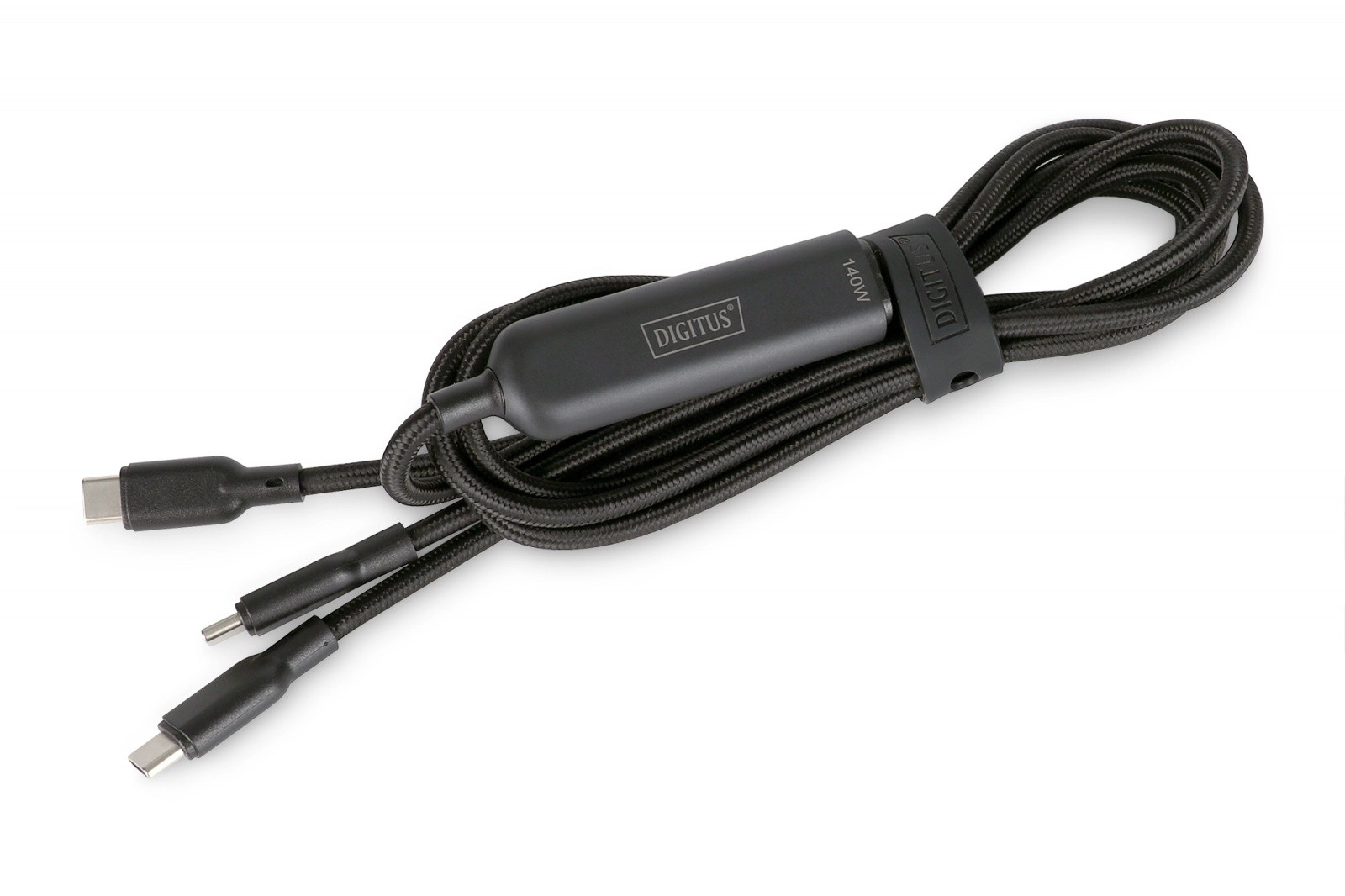 A universal 2‑in‑1 cable with two USB‑C ends lets you charge two devices at once. Thanks to Power Delivery 3.1 up to 140 W, it reliably powers even high‑performance laptops, while intelligent power distribution protects your devices from overload. The nylon braid and 1.8 m length ensure durability and convenience at home, in the office, and on the go.