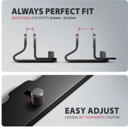 The solid body made of aluminum alloy ensures long service life and stability. The milled adjustment screw insert reliably locks the set width, so you can easily adapt the stand to both thin and more robust laptops. Non-slip, gentle padding protects the device’s surface from scuffs and prevents unwanted movement.