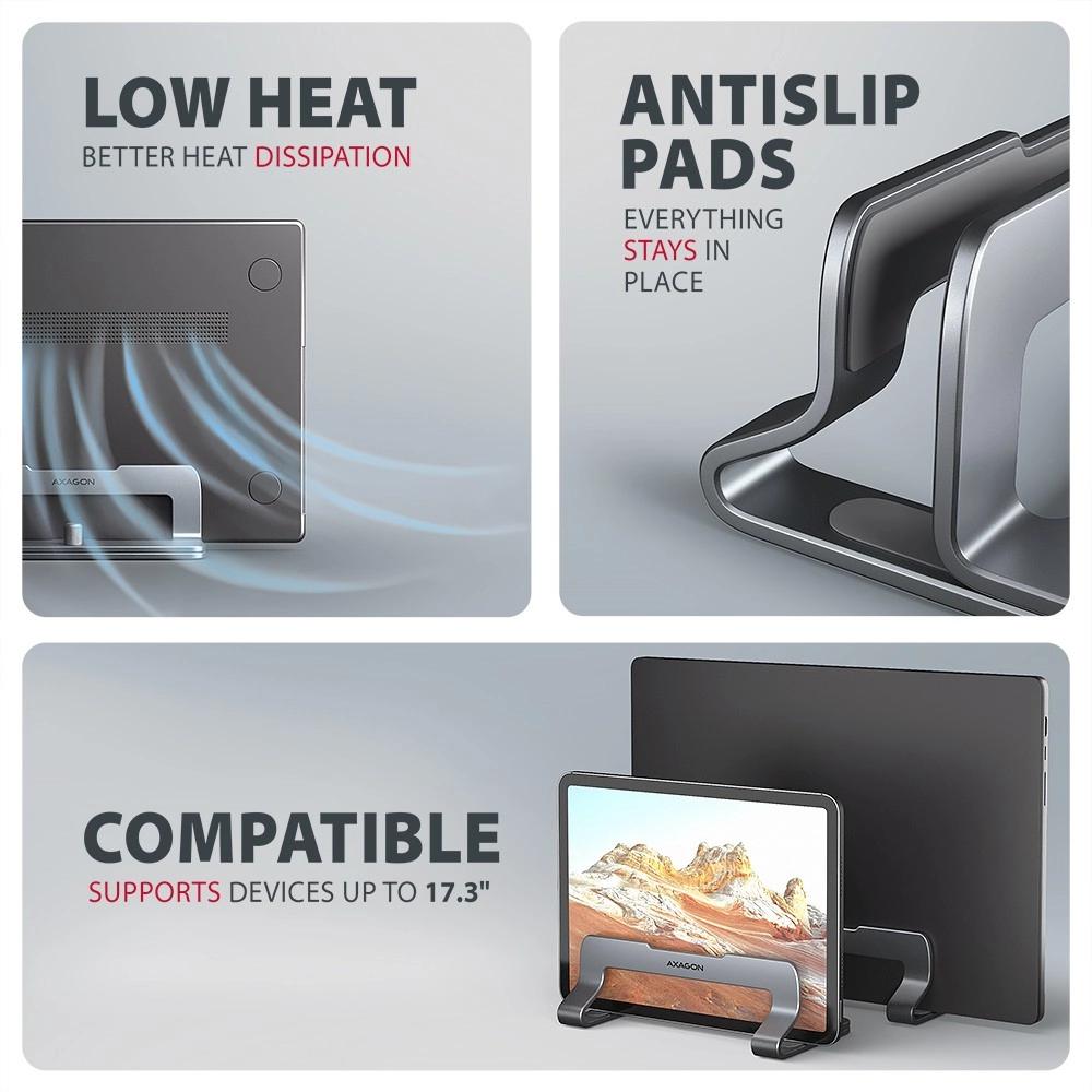 AXAGON STND-VG aluminum vertical stand for laptop 10–17.3", gray