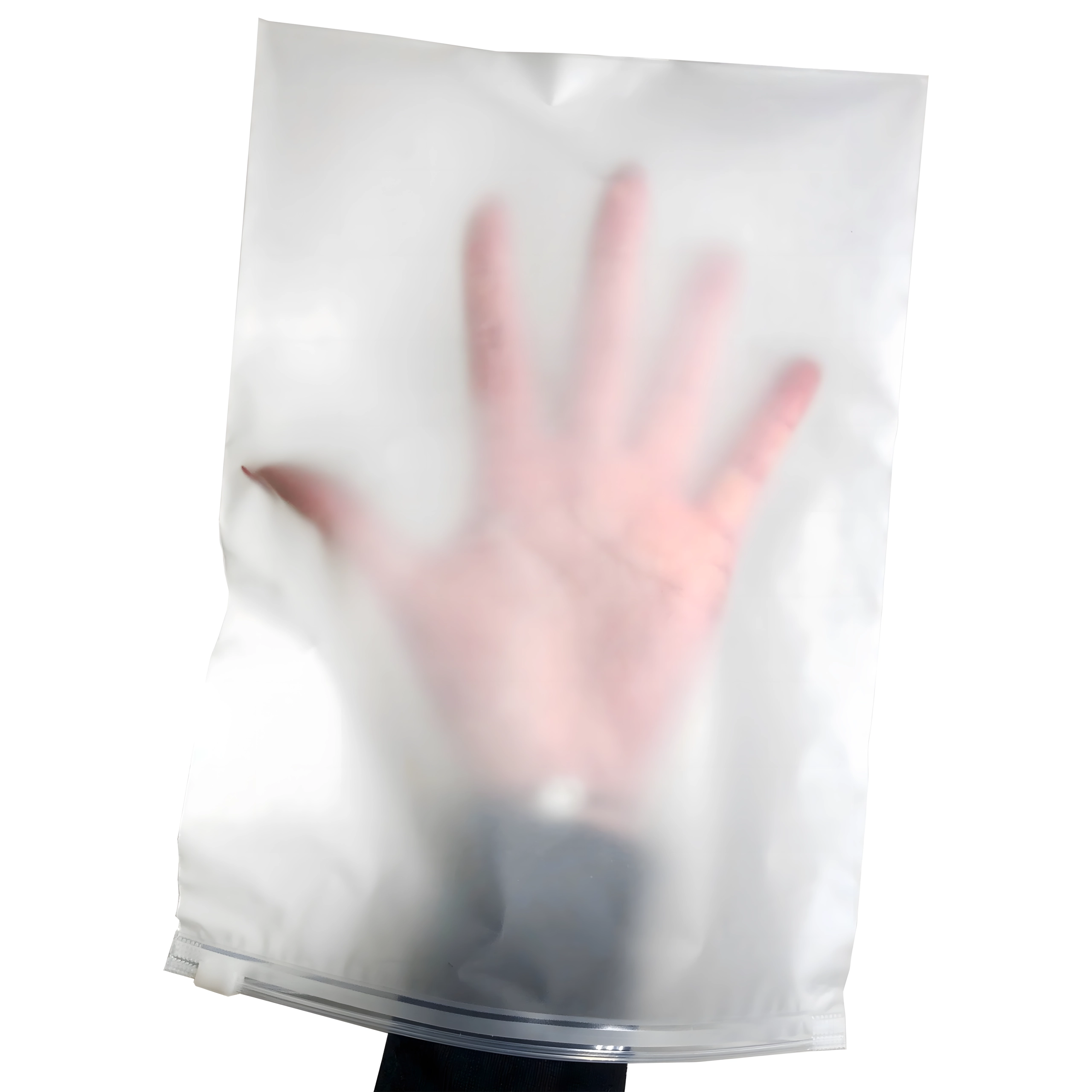 Matte zip bags offer versatile use for cosmetics, small electronics, footwear, travel accessories, and documents. The semi-transparent material provides privacy while allowing quick identification of contents. The reliable zip closure protects against spills, moisture, and dirt.