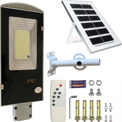Wide coverage is ensured by 100 LEDs, which provide uniform illumination and high efficiency. The solar solution eliminates the need for electrical wiring, reduces costs, and improves safety after dark.