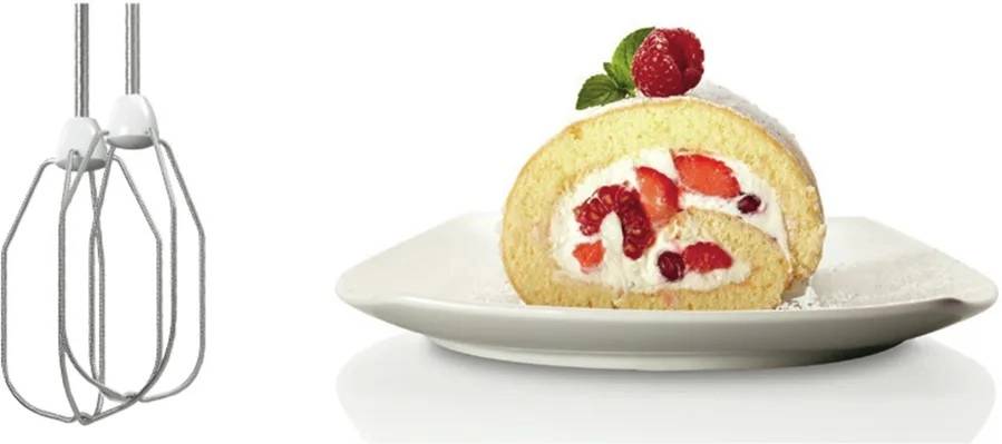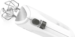The package includes stainless-steel beaters for perfect aeration of creams and egg whites, and durable dough hooks for even dough processing. A practical attachment release button ensures easy swapping and cleaning. The light construction and comfortable grip provide convenient use even during longer mixing sessions.