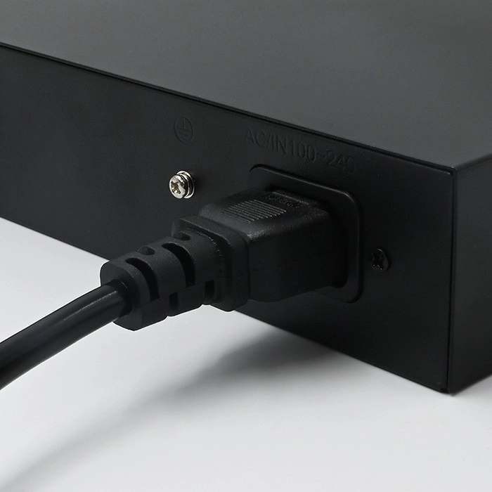 A reliable, high‑performance network switch for home and business with Plug & Play technology. It offers 8 PoE 10/100 Mbps ports for power and data over a single cable and 2 uplink ports for easy connection to a router or another switch. Total PoE budget 120 W, IEEE 802.3af compatibility, passive cooling for quiet operation, and a metal chassis for long service life.