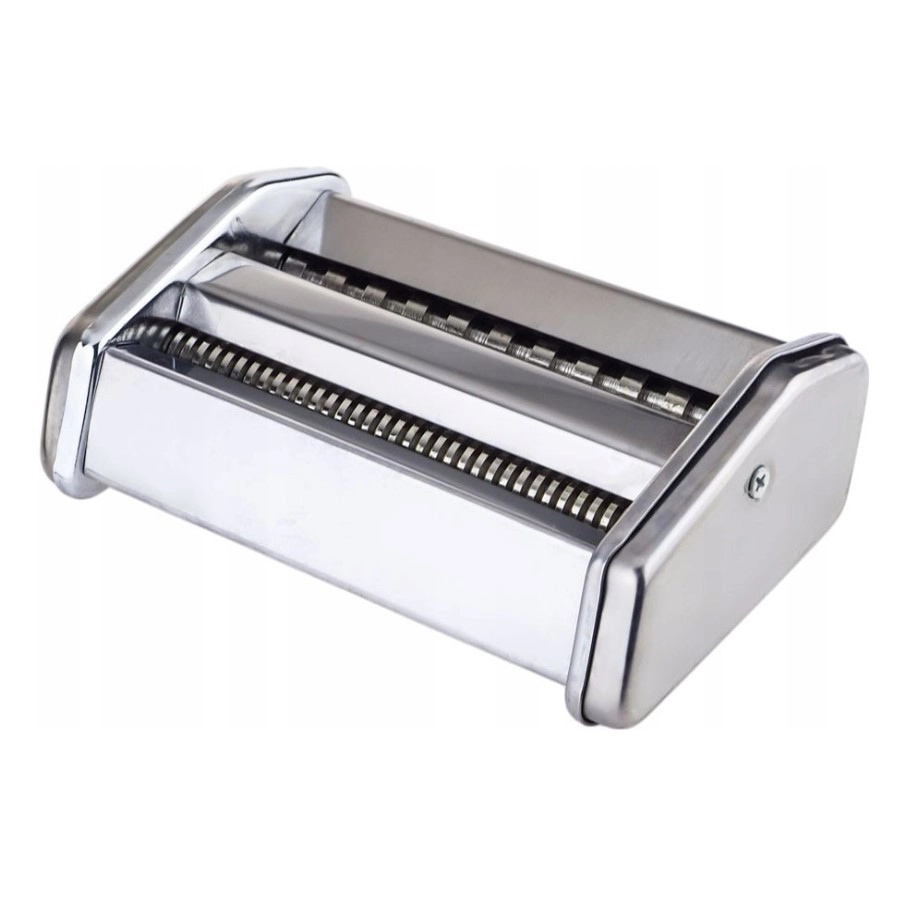Enjoy the taste of homemade pasta with the manual MAESTRO MR-1679 machine. Durable stainless steel, practical 2-in-1 design for lasagna sheets and cutting 2 mm and 6.5 mm, 9 thickness settings (0.3–3 mm), and a stable table clamp with non-slip feet for comfortable, precise rolling up to 14.5 cm wide.