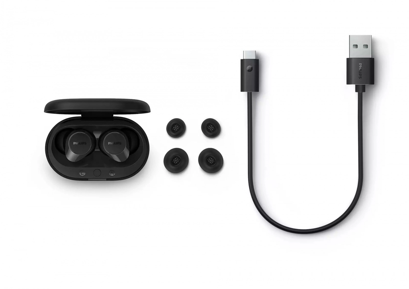 Enjoy the freedom of no wires with PHILIPS true wireless earbuds that deliver a warm, natural sound with deep bass thanks to 10 mm drivers and the switchable Dynamic Bass mode. With a lightweight ergonomic design and interchangeable silicone tips, they sit secure and comfortable all day.