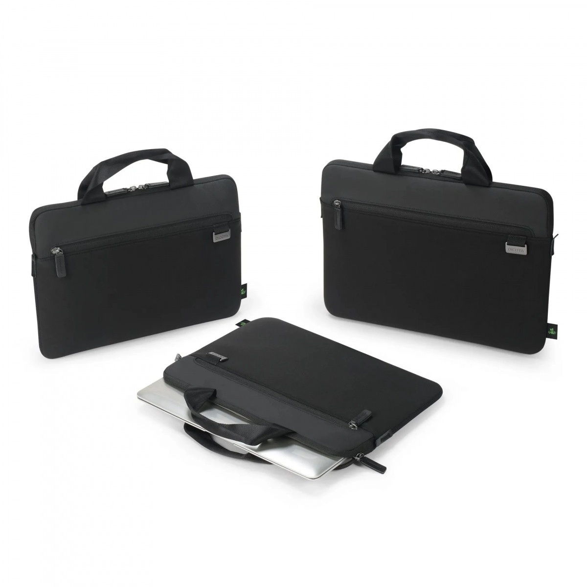 A lightweight and durable sleeve for laptops and large tablets up to 13" from the premium DICOTA FIVE PLUS line offers reliable protection, smart organization, and everyday mobility comfort. Made from recycled materials, featuring a front pocket for accessories and a secure zipper, ideal both inside a larger bag and for standalone carry.
