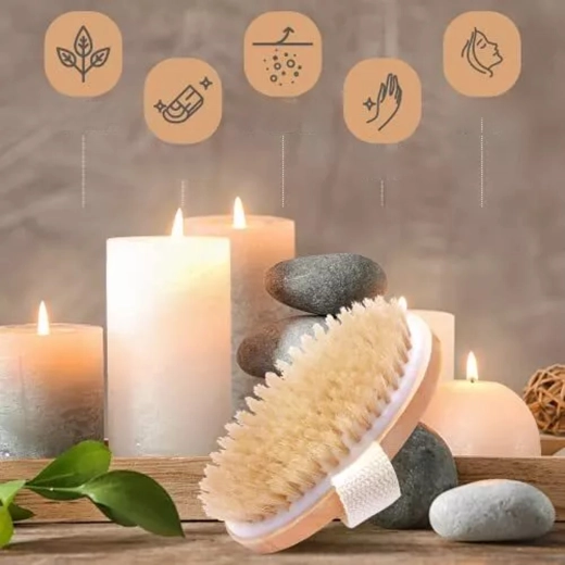 • Natural bristles – effective exfoliation without irritation.