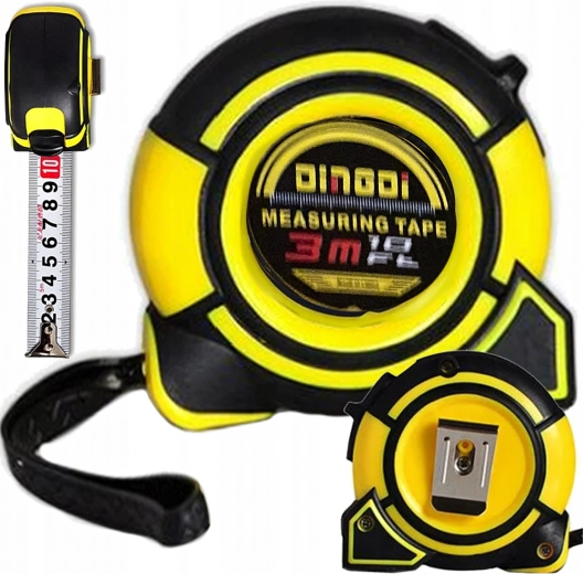 A reliable 3-meter tape measure features a durable steel measuring tape 16 mm wide for precise and comfortable measuring. Thanks to the integrated lock, you can easily fix the tape in the desired position for accurate readings. The compact, lightweight construction is suitable for DIYers, tradespeople, and professional use.