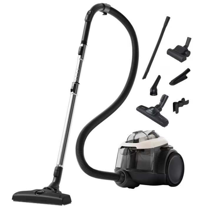 The compact bagless vacuum cleaner Hygienic 600 EL61H4SW combines cyclone technology for stable suction power, quick two-step bin emptying, and HEPA filtration of up to 99.99% of fine particles. Thanks to its ergonomic design, large rubber wheels, and the option to store it upright or flat, it’s ideal for any household.
