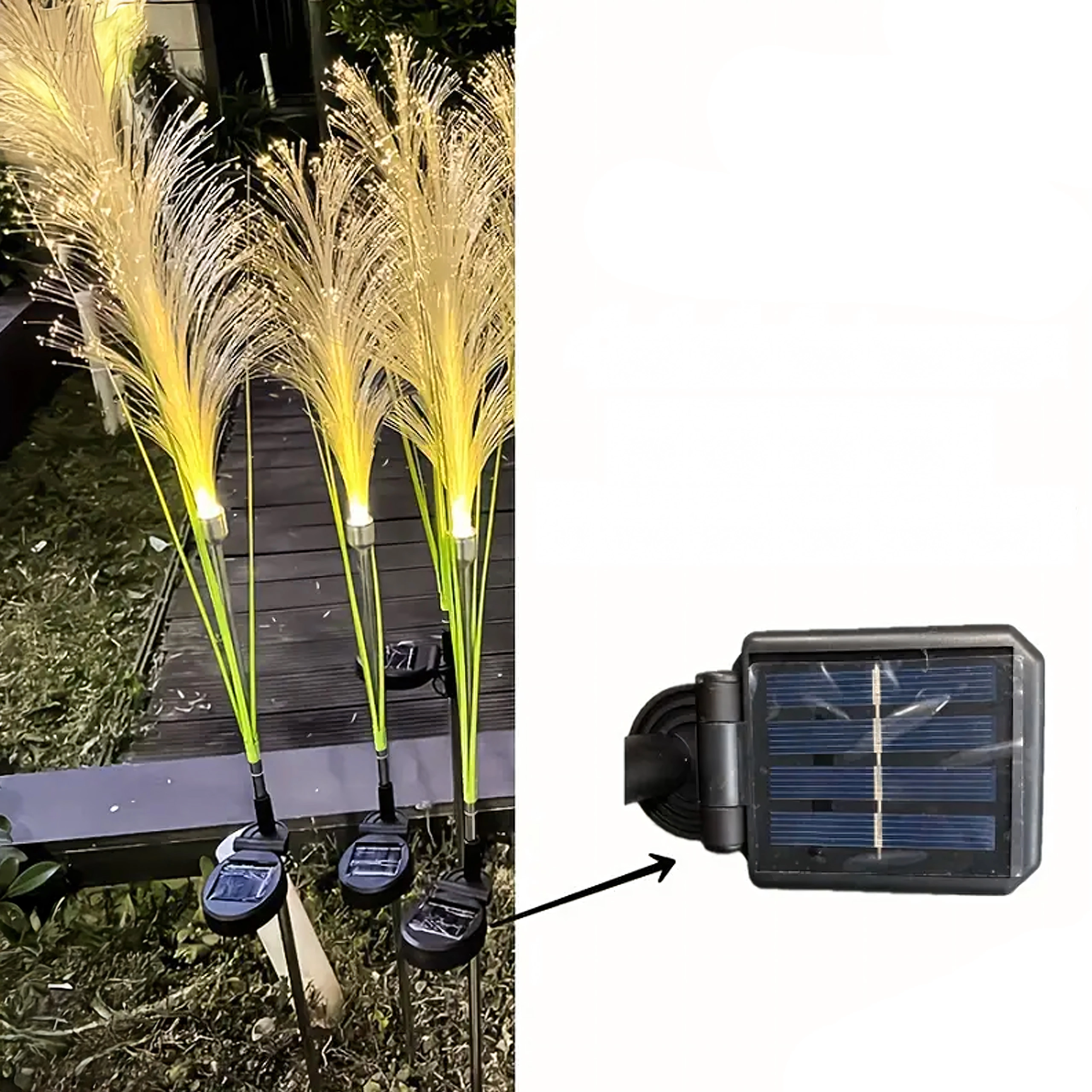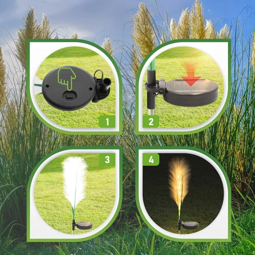 Bring a magical atmosphere to your garden with solar decorative lights shaped like pampas grass. Elegant warm light, automatic dusk activation, no cables or mains power, and easy stake-in installation – ideal along paths, flower beds, and lawns.