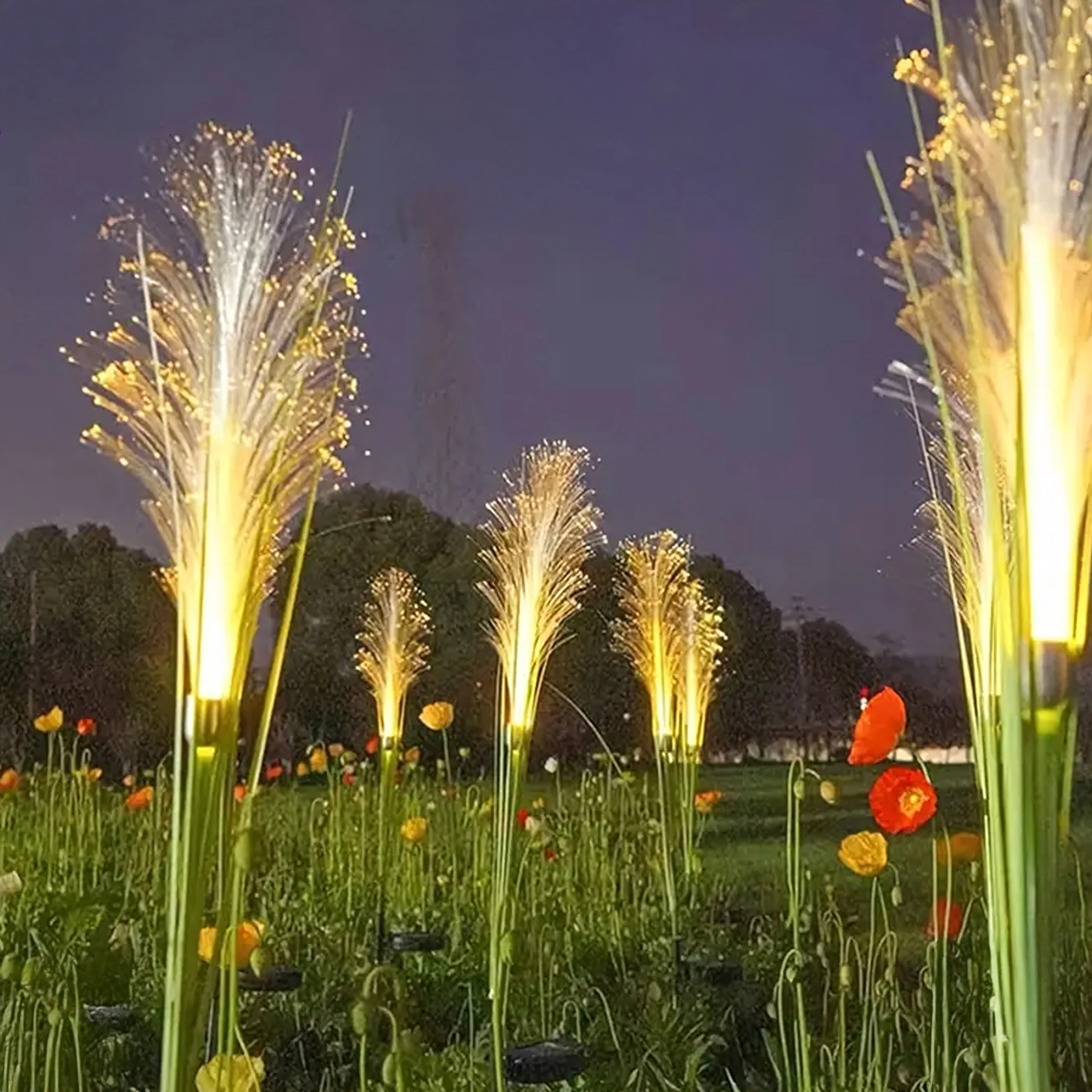Fine optical fibers create a sparkling, natural look and a pleasant warm glow that stands out in lawns and beds.