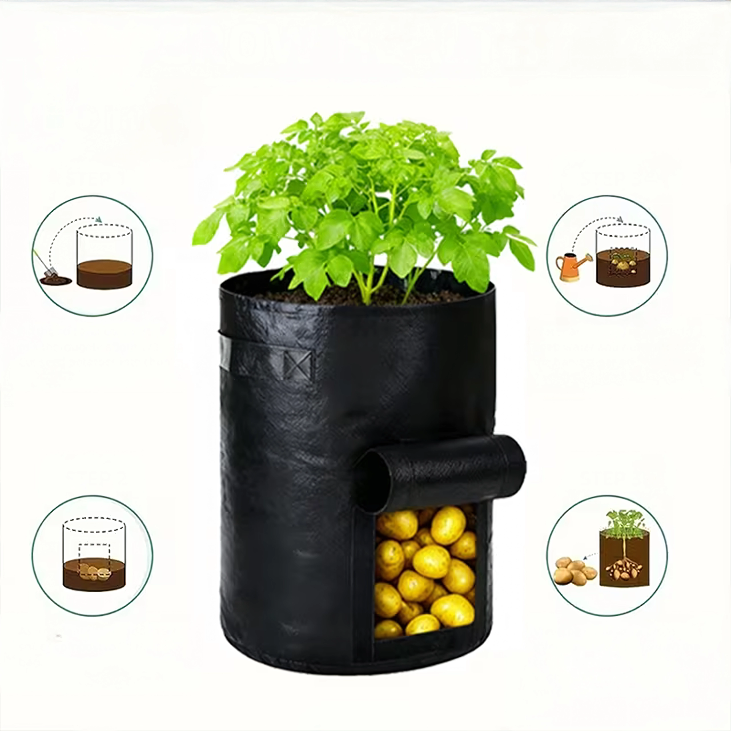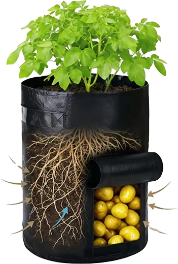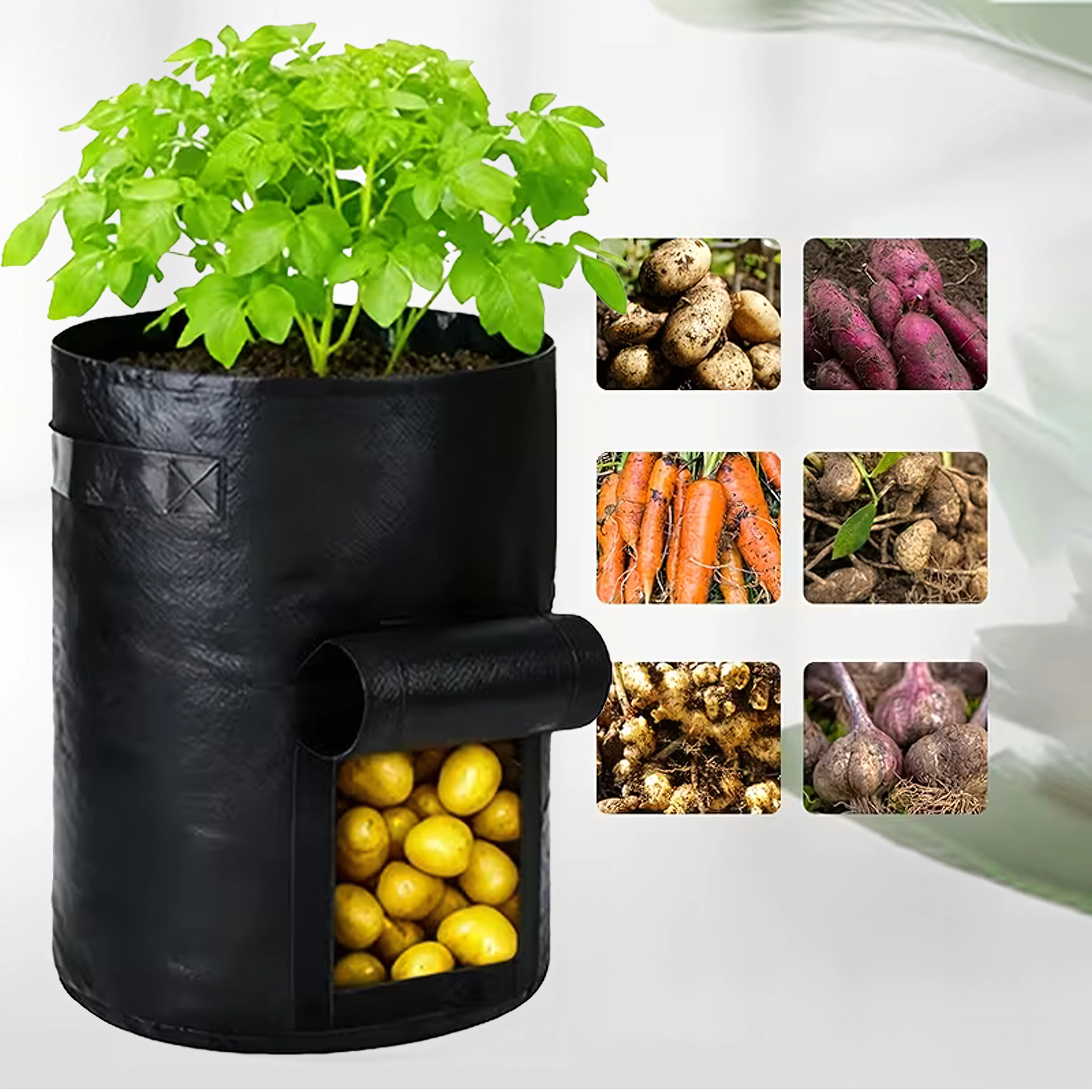 Maximize your harvest even in a small space. This grow bag is ideal for potatoes, carrots, radishes, onions, and herbs. The side hook-and-loop window makes ongoing checks and harvesting easy—without needing to tip out the substrate.