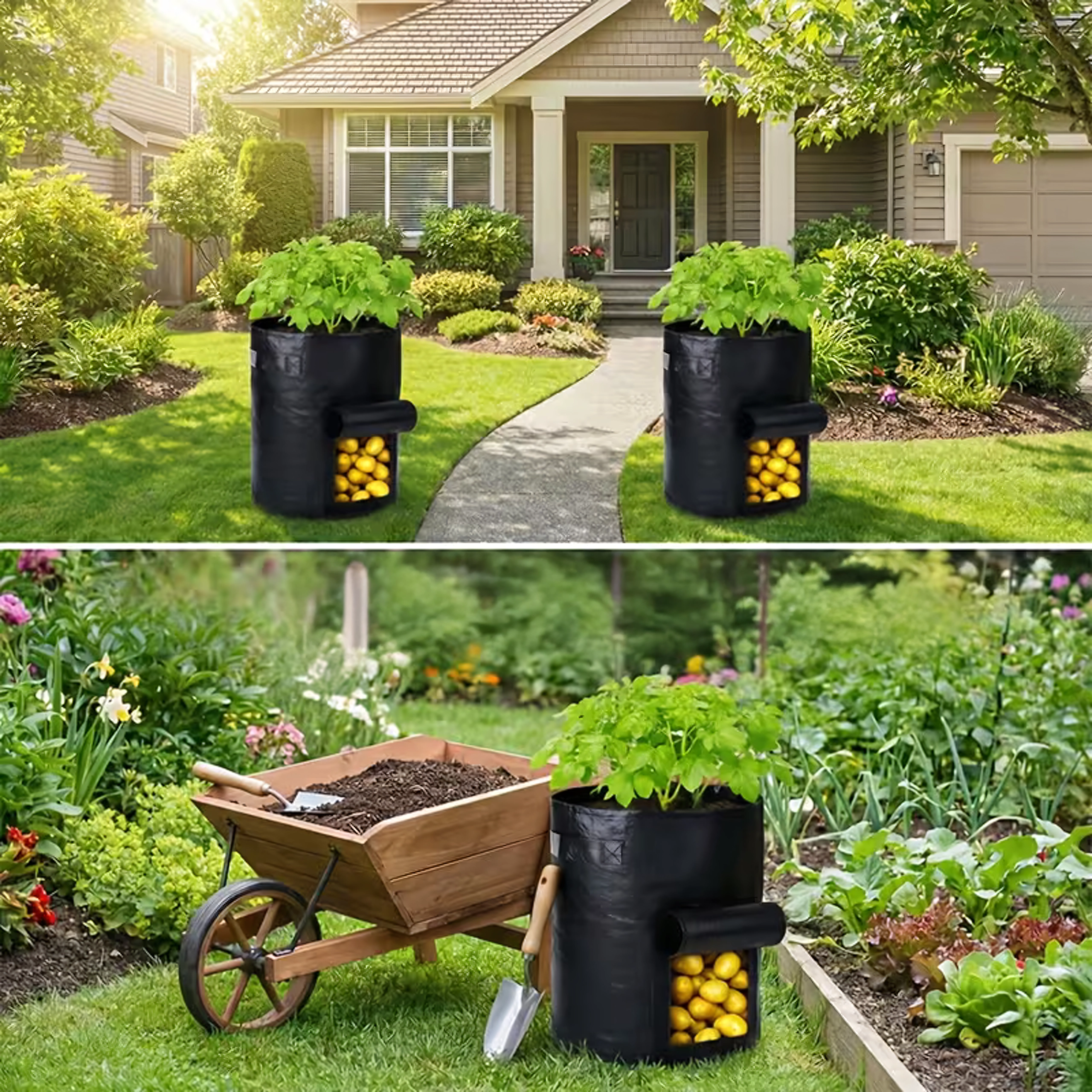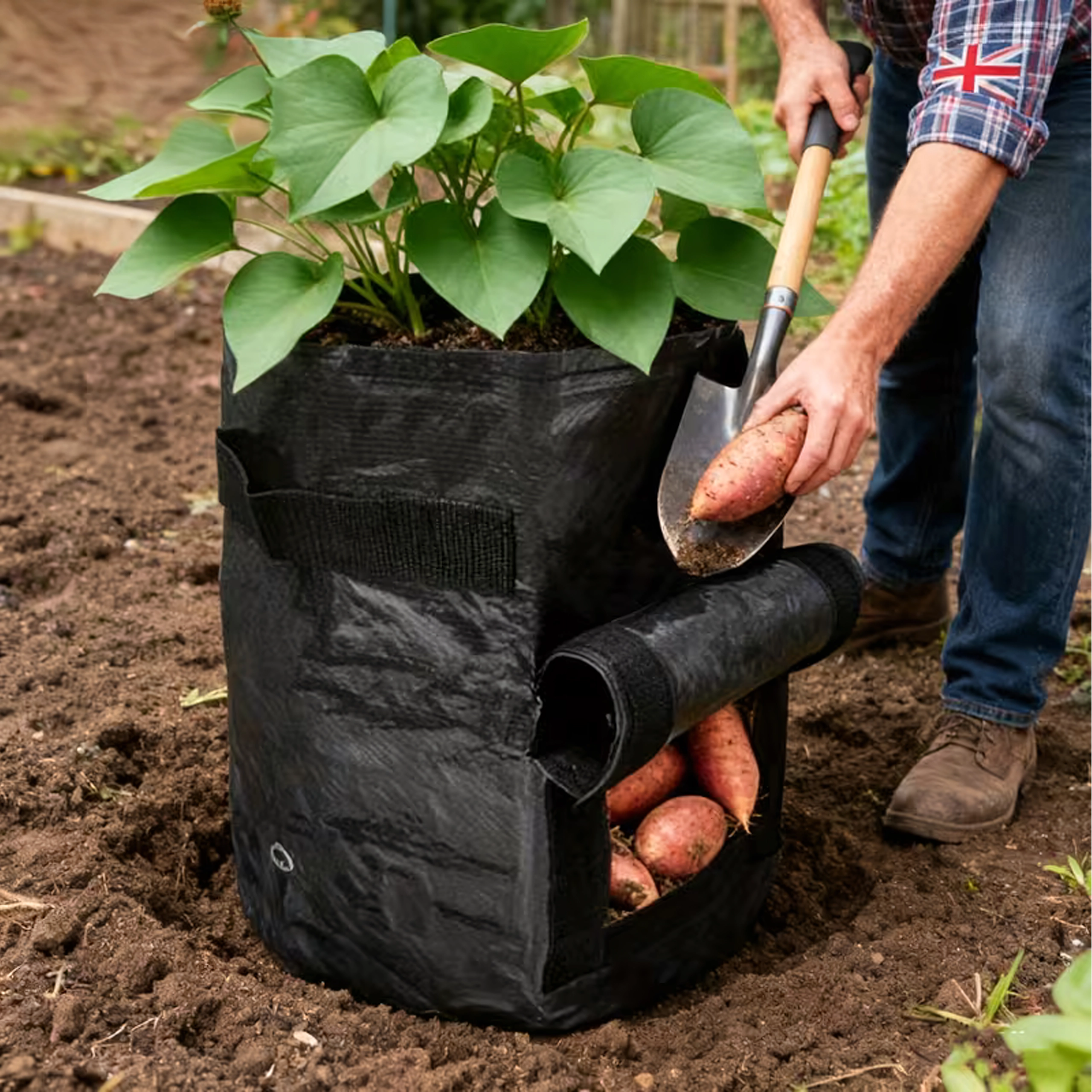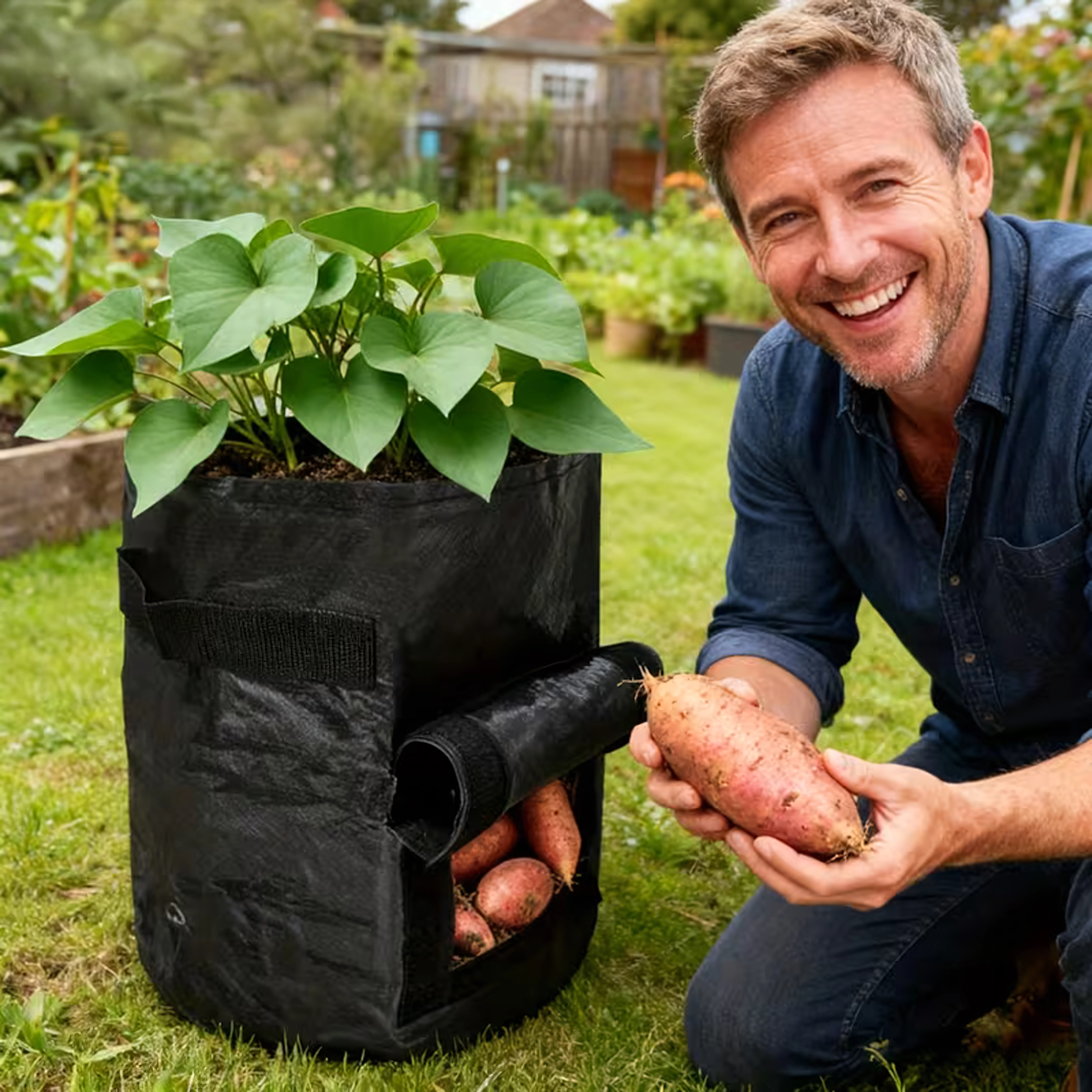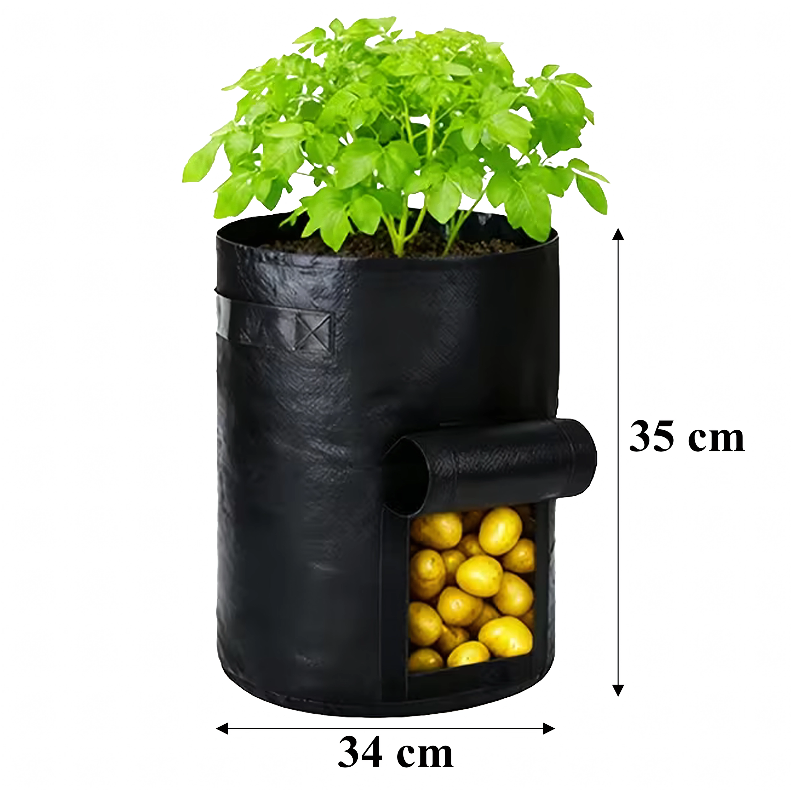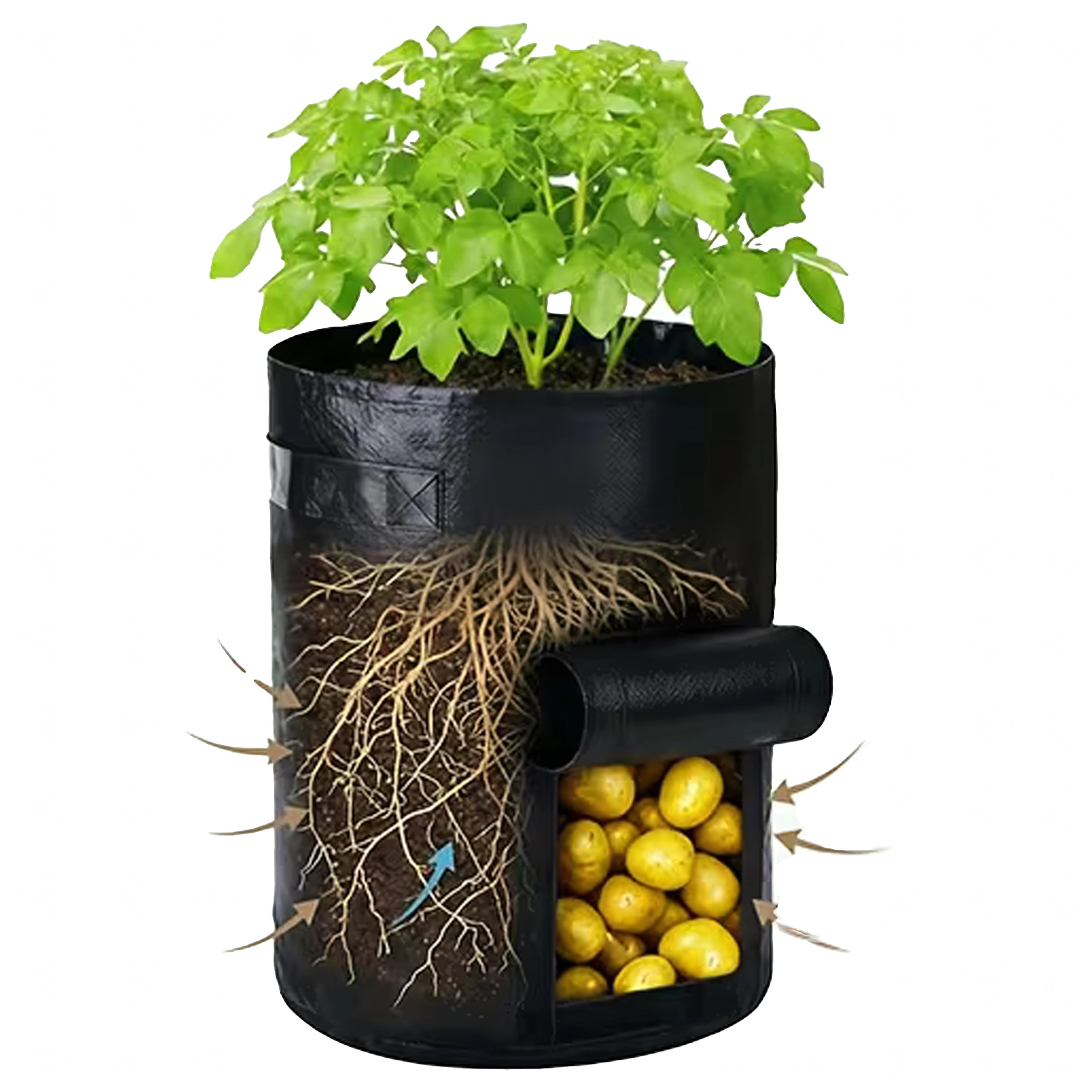 Harvest potatoes and other root crops quickly and without mess. The hook-and-loop window lets you look inside and remove only the ripe pieces.