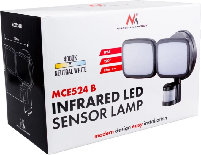 A powerful and modern LED security light with a PIR sensor for automatic illumination around the house and indoors. Two independent LED heads provide targeted, wide lighting, a luminous flux of 1500 lm, and a pleasant neutral white 4000 K. The durable IP65 design is ideal for any weather, and the adjustable motion detection ensures light exactly when you need it.